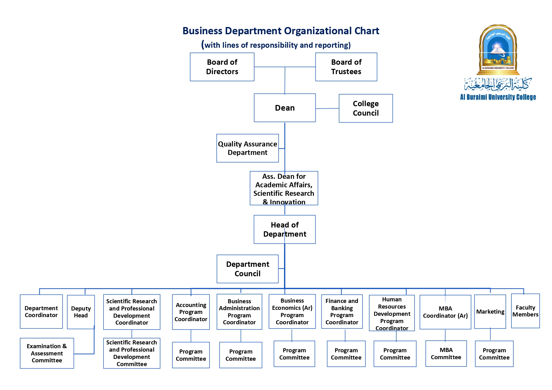 The organizational chart for the Business Administration & Accounting Department is provided below: