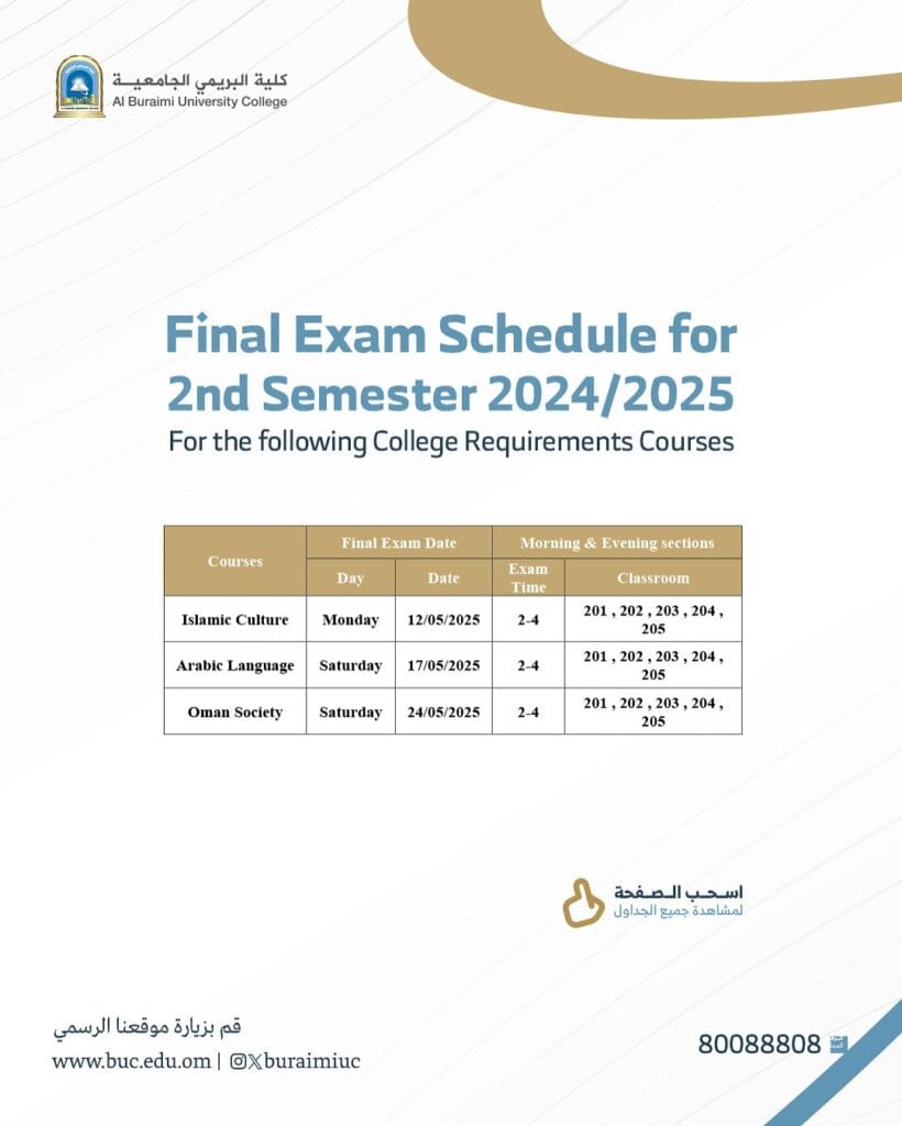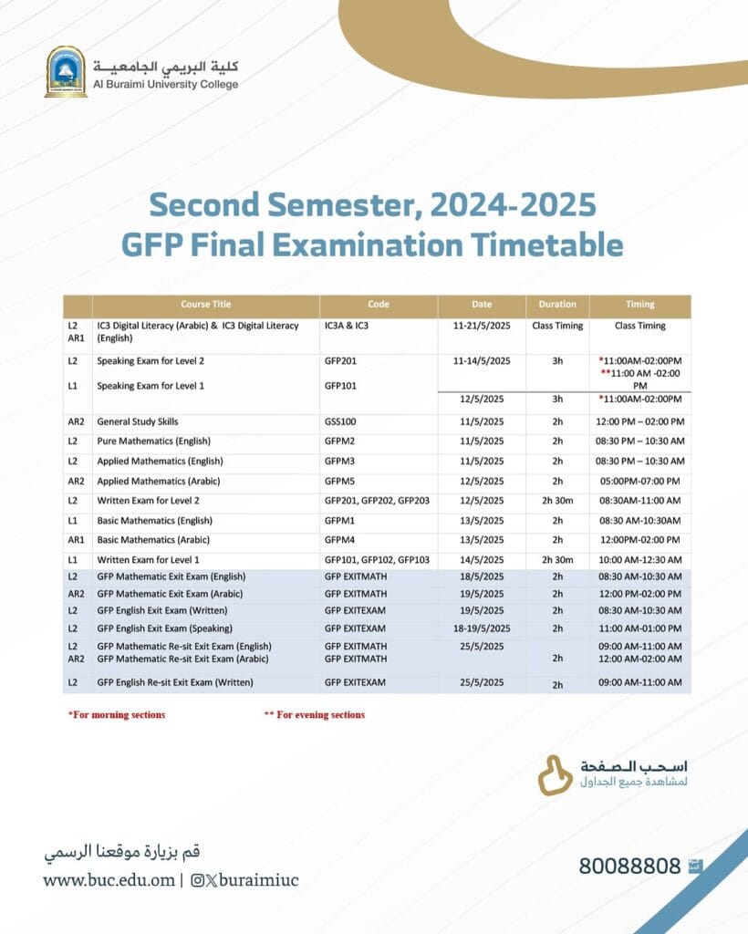 College Requriments Final Exam Schedule for the second semester of the academic year 2024-2025College Requriments Final Exam for 2nd 2024GFP Final Exam for 2nd 2024Unauthorized Laundry PlayJob OpportunitiesCareer Guidance WeekCooperation Agreement with Gulf CollegeParticipated in The Student Advisory Councils ForumCompliance with Traffic Rules – Sharia, Legal Aspects and Traffic SafetyOrganizing and Managing Effective MeetingsFuture Employees Initiative “The Third Cycle” Previous 1 … 5 6 7 8 9 10 11 … 18 Next